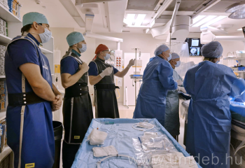 The participants attending a conference in Oradea, Romania, could watch a live broadcast of catheter procedures performed at the Cardiology and Heart Surgery Clinic of the Clinical Center of the University of Debrecen. It was the most recent solutions for a minimally invasive treatment of complete coronary artery occlusion that were presented at this Romanian-Hungarian professional forum as well as during the training course preceding it.